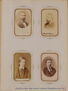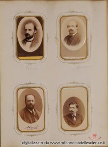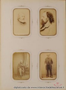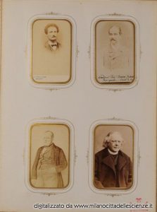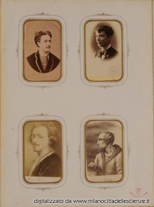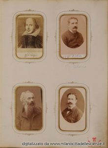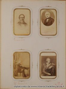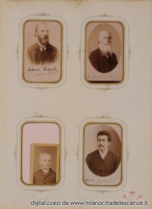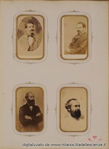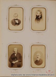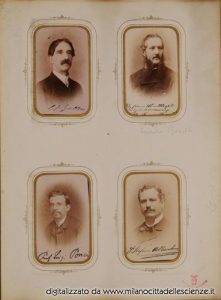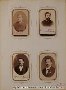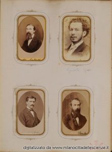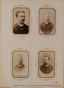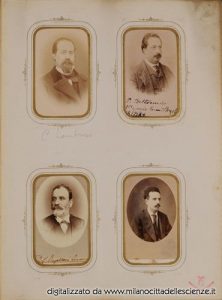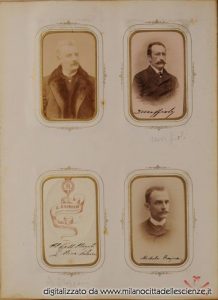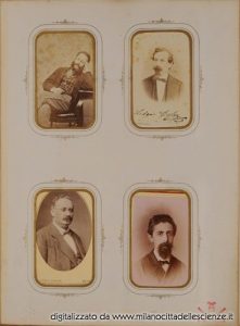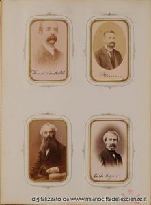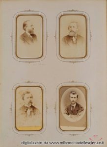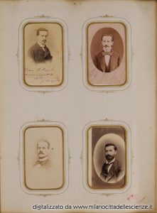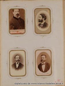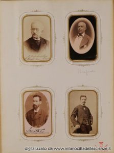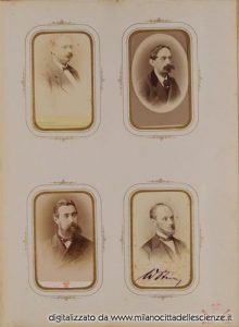 L’album fotografico I miei autori e collaboratori, conservato e messoci gentilmente a disposizione dalla Biblioteca di Storia e Cultura del Piemonte a Torino, è una chiave privilegiata che ci permette di entrare e conoscere meglio il mondo di Ulrico Hoepli. I ritratti in esso conservati, come ben dice Roberto Cassanelli nel suo contributo, ci introducono alla presenza di una “famiglia culturale allargata”, in cui presenze ed assenze sono da valutarsi attentamente. Partendo dalle iscrizioni leggibili, incrociando i dati con i nominativi degli autori presenti nel catalogo Hoepli in quegli anni e grazie alla collaborazione dello stesso Cassanelli e di Pietro Redondi, si è riusciti ad identificare, alcuni in modo certo altri in via ipotetica, oltre novanta dei soggetti di questa preziosa galleria, come risulta dall’elenco delle fotografie qui pubblicato.